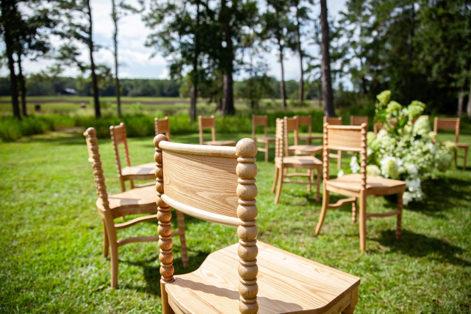 Couple exchanging vows during an outdoor wedding ceremony at Pine Creek Place near Charleston