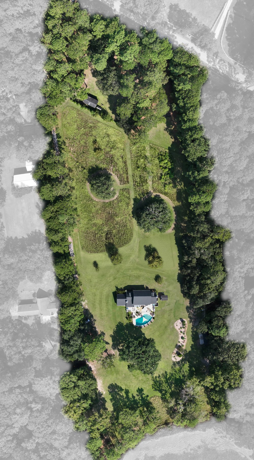 An aerial look at the Pine Creek Place property and the landscape surrounding it.